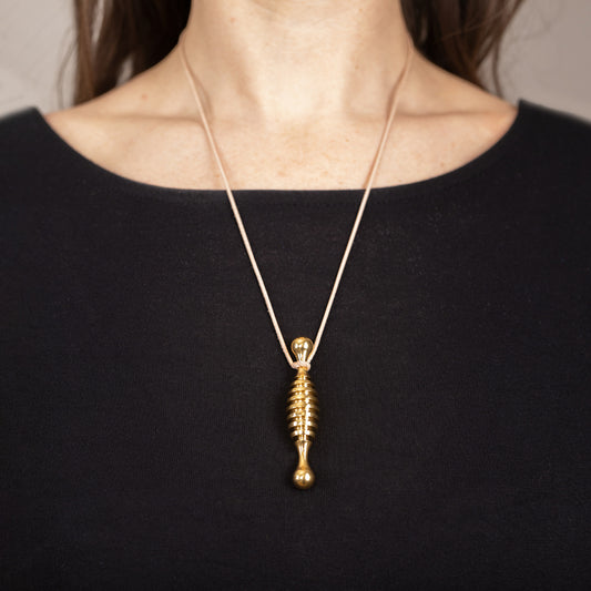 Energetic protection possibly preserves the body's own energy fields from negative interference. The Weber-Isis® Light Body Transformer and the Weber-Isis® Mer-Ka-Ba Spheres probably strengthen the presumed Mer-Ka-Ba field of the human being, and they can thus support the so-called light body process. Possible form radiations on a star tetrahedron basis, which the Weber-Isis® Light Body Transformer and the Weber-Isis® Mer-Ka-Ba spheres probably generate, could prove beneficial in this process. The core component of all devices that can probably optimise the flow of energy is the metal brass with its golden alloy and with its very special rib and groove shape. Natural geometric form radiation probably unfolds particularly well on ring and spherical forms and can thus increase the absorption capacity for chakra energy. The Isis Beamer 1:1 also follows this principle. Like all our protective amulets, you can wear it comfortably around your neck.